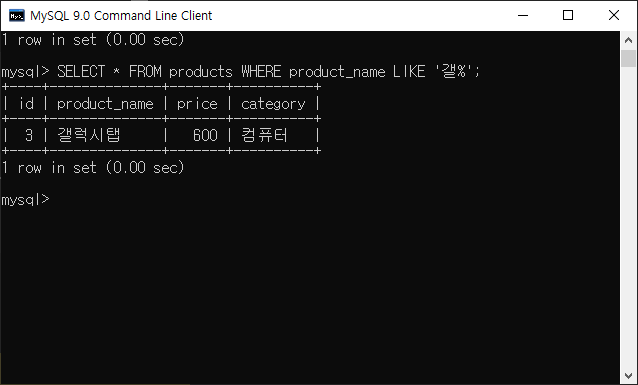 SELECT * FROM products WHERE product_name LIKE '갤%';