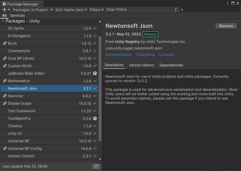 // git URL - com.unity.nuget.newtonsoft-json 입력
