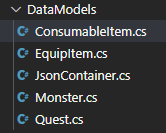 위와 동일한 방식으로 정의해둔 C# 파일을 모아두었고, 게임 실행과 동시에 Json을 읽어와 역직렬화하는 코드를 작성하였다.