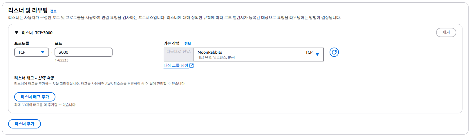 4) 리스너 포트 : 3000. 헬스 체크용 포트를 연 게 아니라면 서버 포트와 같은 포트로 설정해줘야 한다.