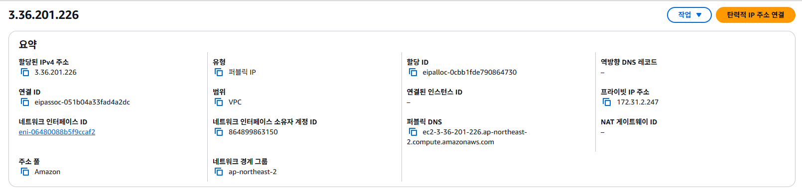 여기서 생성한 EIP는 직접 인스턴스에 할당하기 위함이 아니다.