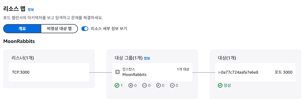 로드 밸런서 - 리소스 맵 탭을 통해 헬스 체크도 확인할 수 있다.