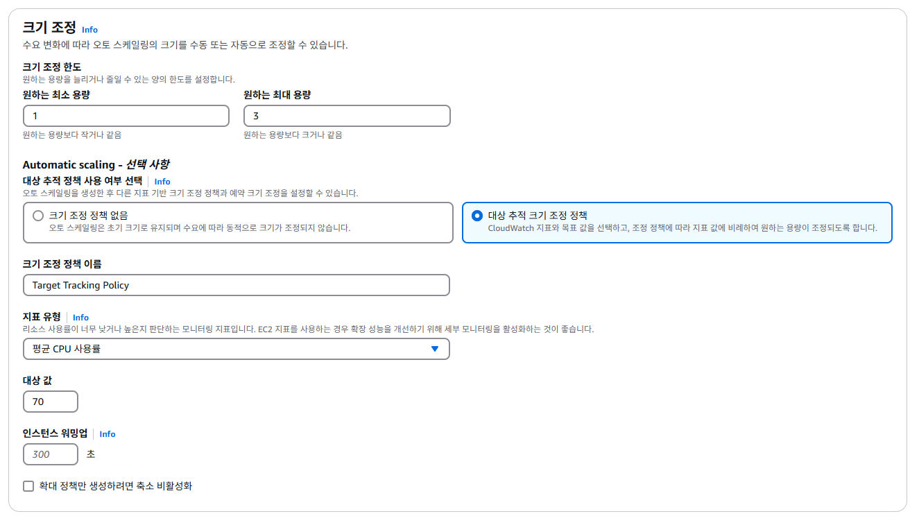 1) AWS 콘솔 → EC2 →오토 스케일링 그룹 → 오토 스케일링 그룹 생성