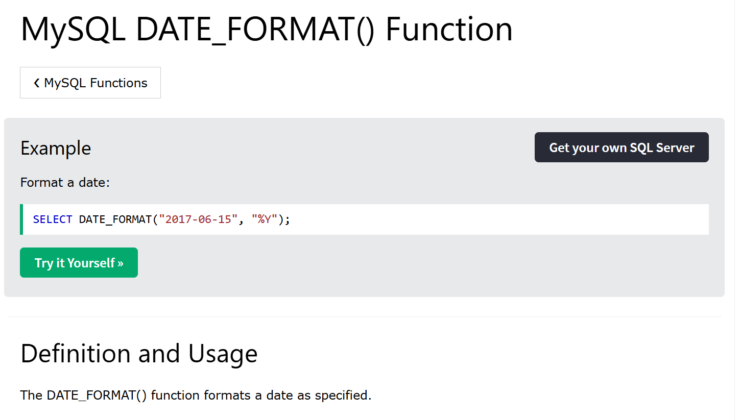 DATE 포맷에서 년도로 조회하는 방법은 DATE_FORMAT() 함수에서 %Y로 년도를 추출하는 것이다.