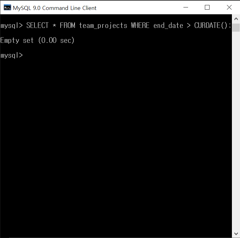 What is the meaning of ‘empty set’ in MySQL result set? (tutorialspoint.com)(참고한 링크)