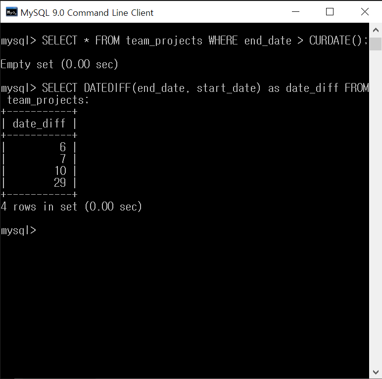 새롭게 계산한 값을 담아둘 칼럼의 이름도 별명으로(alias) date_diff라고 명시해주었다.