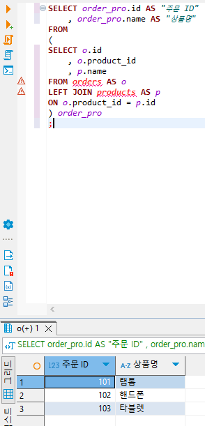 SELECT order_pro.id AS "주문 ID"