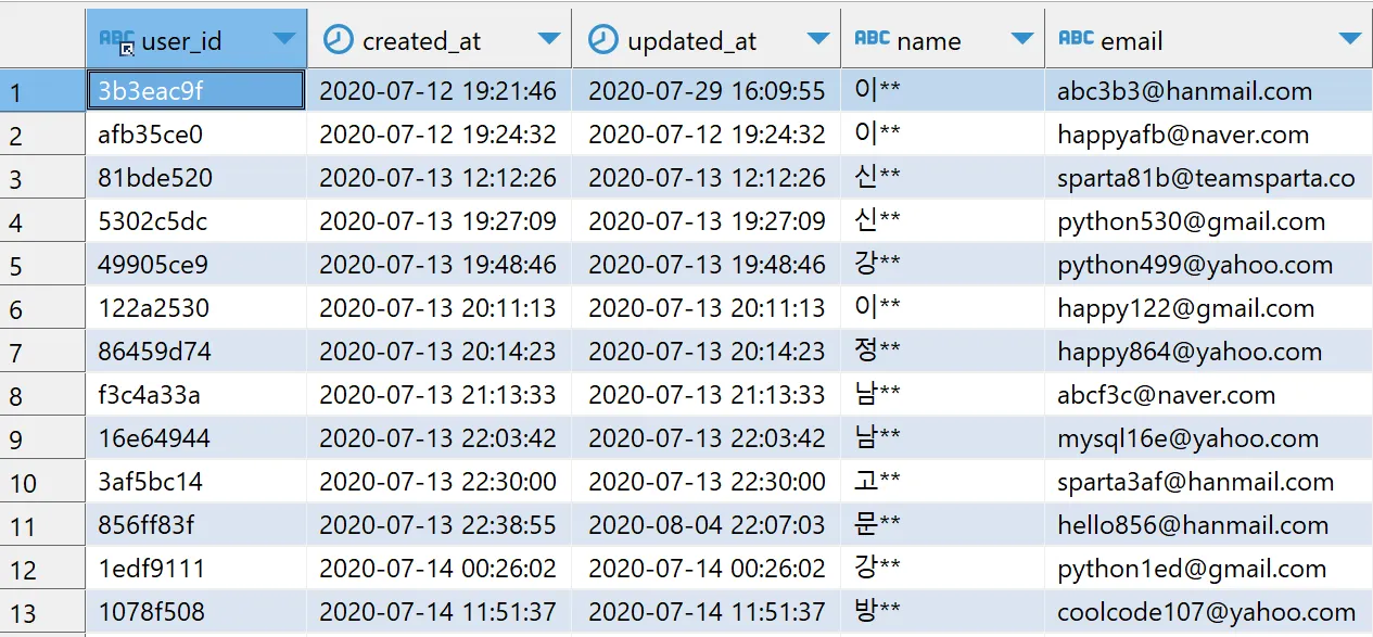 users 테이블은 스파르타 코딩클럽에 가입한 유저들의 정보를 날짜별로 기록한 테이블입니다.
