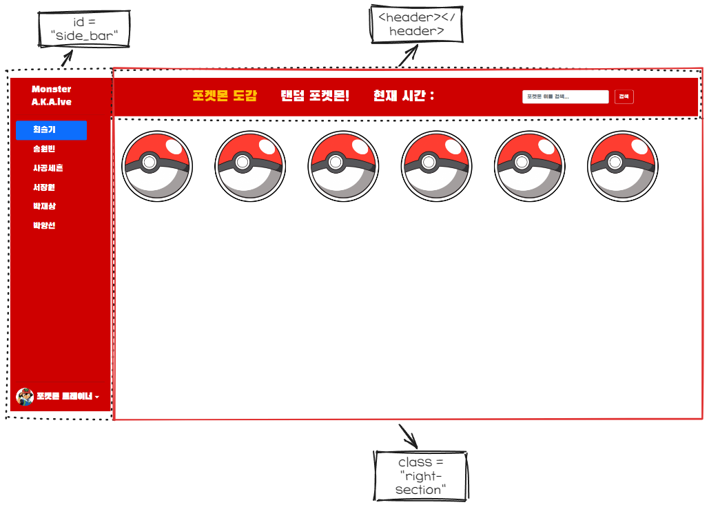 우리가 스타팅 몬스터의 역할을 맡고, 사이트 방문자가 몬스터 볼 중 하나를 선택하면 포켓몬 도감처럼 각자의 소개글이 나오게끔 프로젝트의 방향을 잡았다.