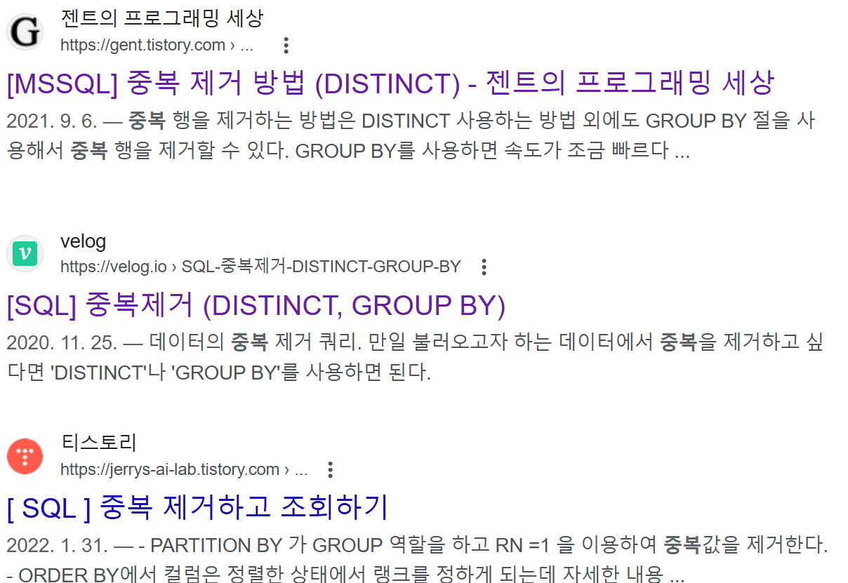 구글의 도움을 받아보자. 검색어는 ‘SQL 중복 없이 조회’