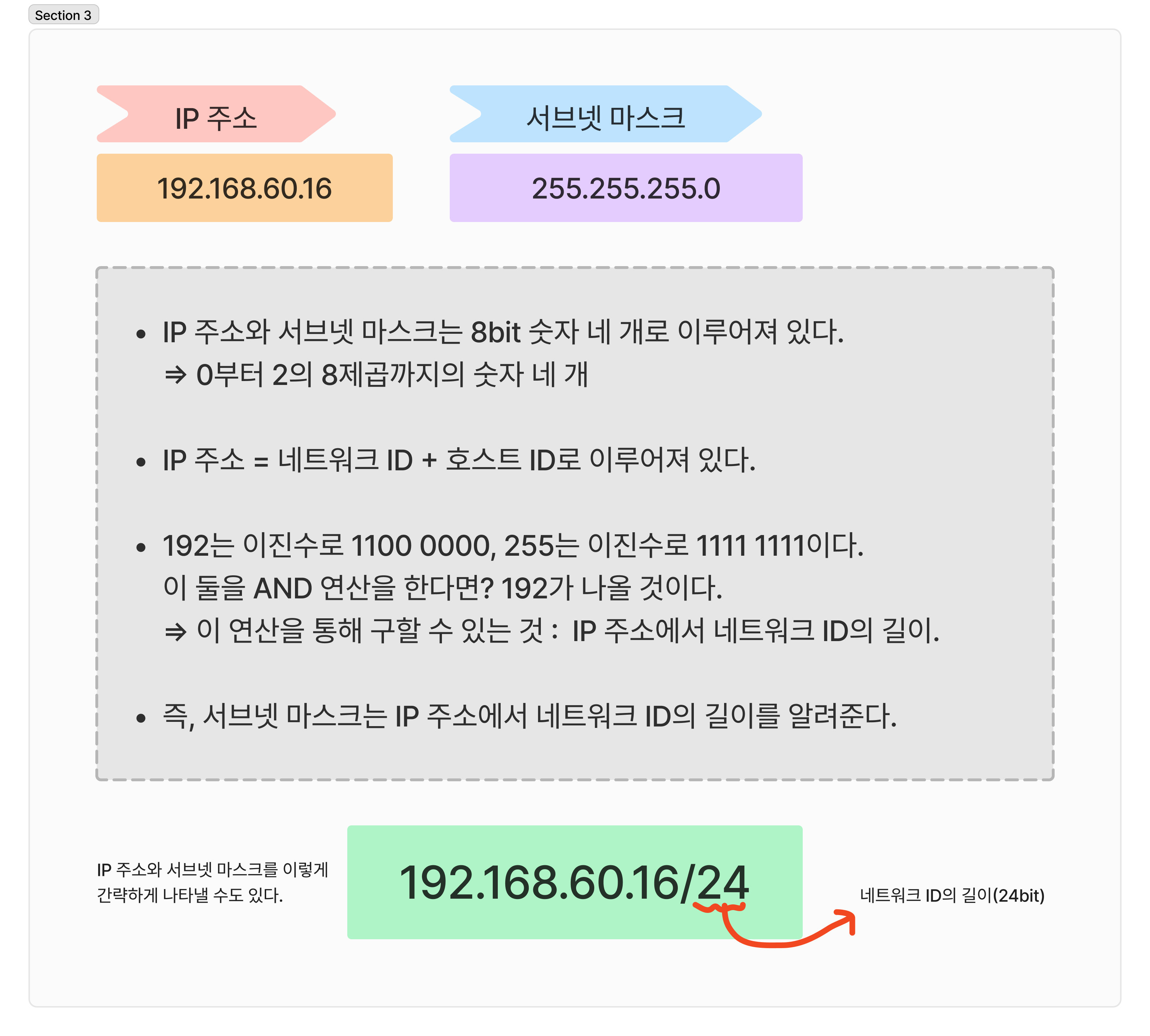 이제 서브넷 마스크를 통해 IP에 담긴 네트워크 ID를 구분해내는 방식을 올바르게 이해했을 것이다.